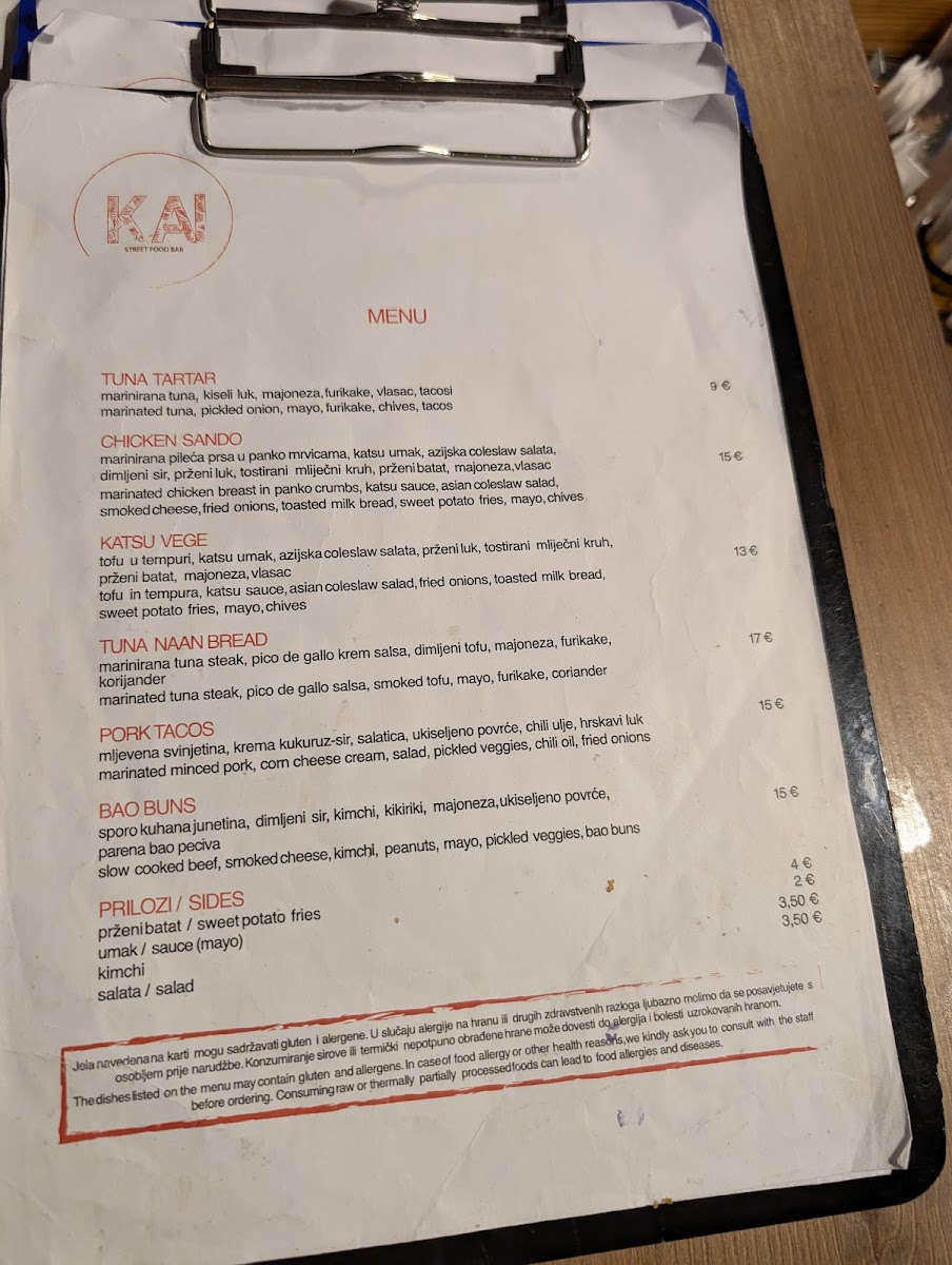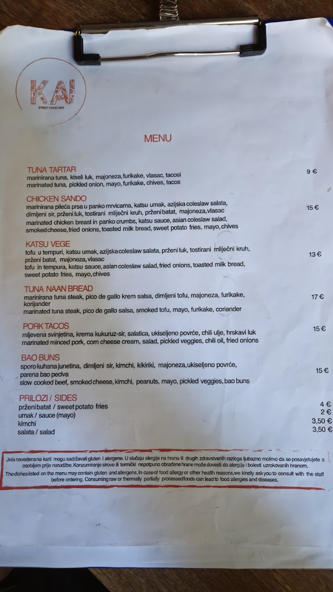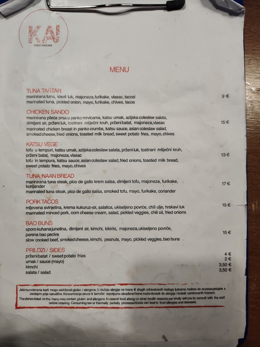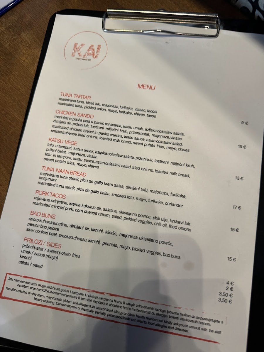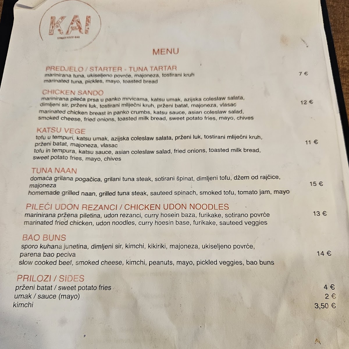 Introducing the menu at Kai Street Food is an invitation to explore the culinary heart of Zagreb. This charming little eatery, nestled on Jurisiceva ul. 2A, boasts an impressive array of dishes, each bursting with flavor and creativity. Diners rave about the exquisite chicken schnitzel with sweet potato fries and the flavor-packed pulled pork bao buns, highlighting the restaurant's flair for transforming street food into a gourmet experience.